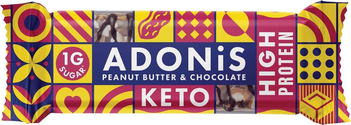 Батончик Adonis — це смачна закуска з високим вмістом білка. Наповнює і додає енергії на тривалий час. Основними інгредієнтами батончика Adonis єсоєві чіпси та арахіс. Батончик підсолоджений еритритом, збагачений соєвим білком і мигдалем.