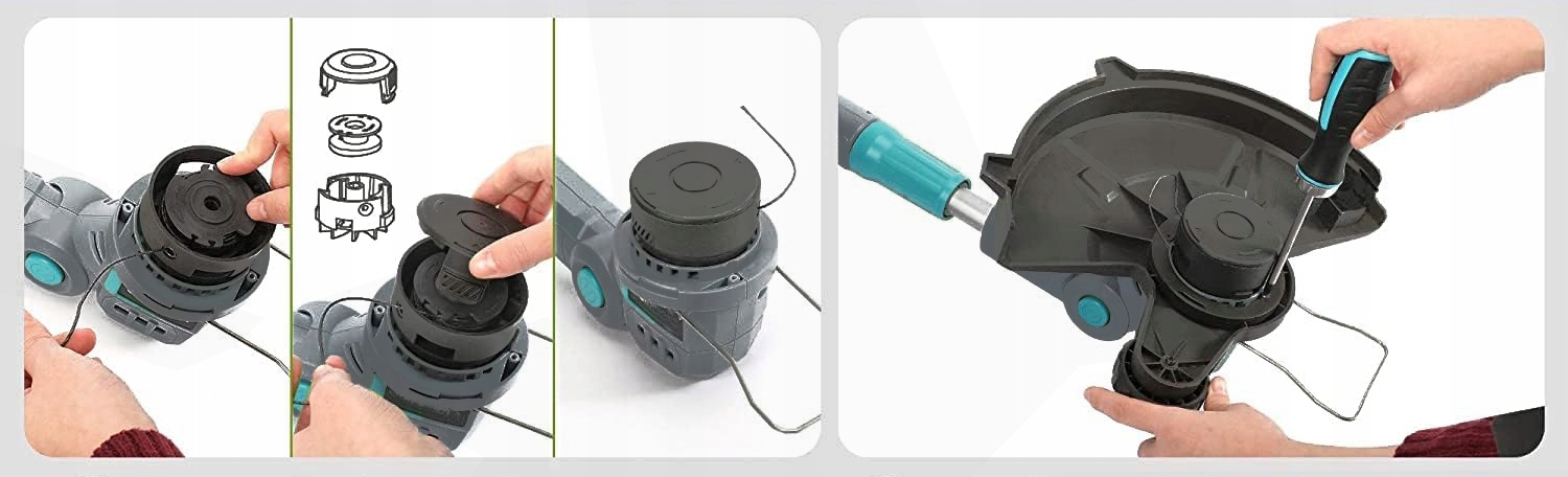 - рішення, яке практично не потребує обслуговування, щоб поповнити довжину лінії, просто натисніть кнопку кнопку на голові та потягніть за волосінь, а зайве зріже різак, встановлений на корпусі