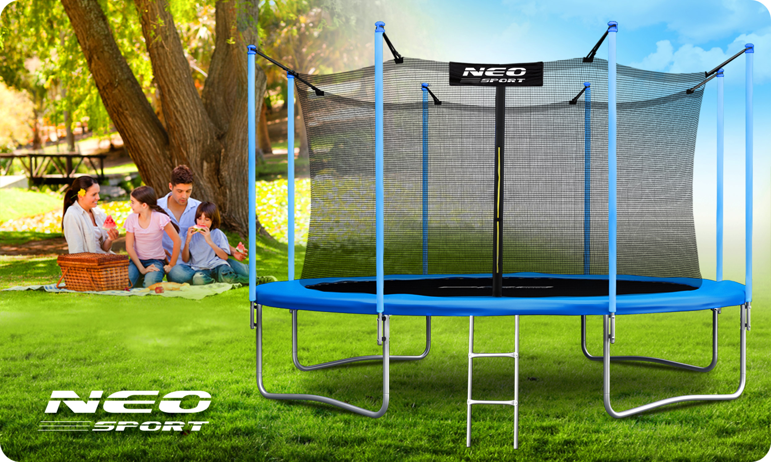 - набір включає: садовий батут, захисну сітку, металеву драбину, інструкцію користувача