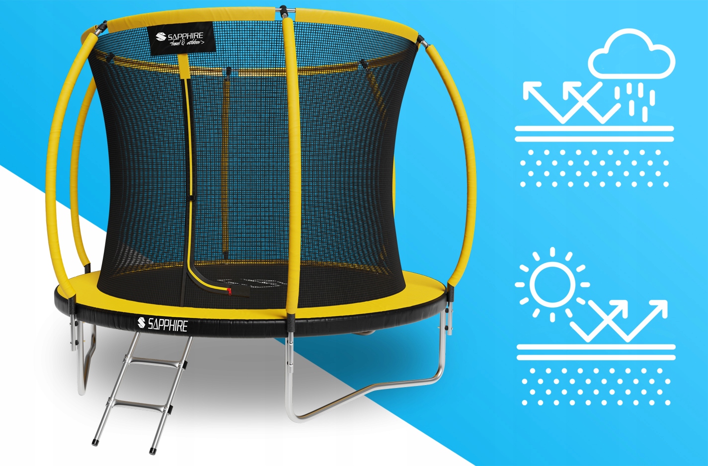 Висококласний батут від Sapphire, підготовлений спеціально для сезону 2024 року. Батути цього бренду пройшли ретельний контроль якості, щоб гарантувати високий рівень безпеки для ваших дітей. Вони мають найвищу якість естафети та стійкі до води та УФ-променів. До кожного батута ми додаємо драбину в подарунок!