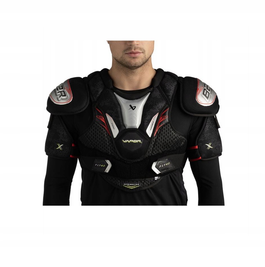 Bauer Vapor Fly40 - легкий дизайн, який зберігає захисники плечей Fly40, забезпечують комфорт та спортивні спорт з низьким профілем. Завдяки переробленій структурі стрічки та плаваючій кришці грудей вони добре відповідають і залишаються на місці протягом усієї гри. Деталі