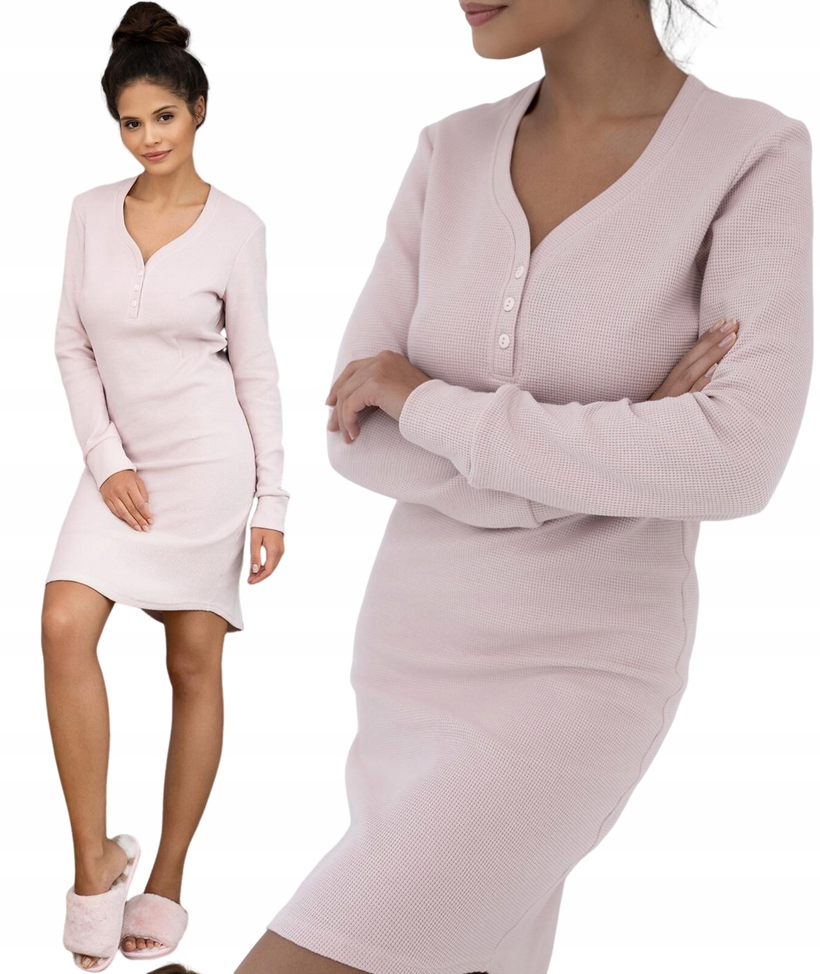 Нічна сорочка польського виробництва - це поєднання класичної елегантності та комфорту, що підкреслює жіночі форми та забезпечує свободу рухів. Виготовлений з високоякісної бавовни з вафельною структурою, він чудово облягає тіло, в той же час приємний на дотик і повітряний.