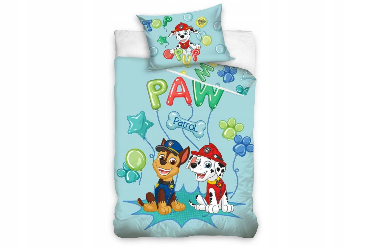 Дитяча бавовняна постільна білизна 100x135 + повітряні кульки Paw Patrol Chase Marshall 40x60