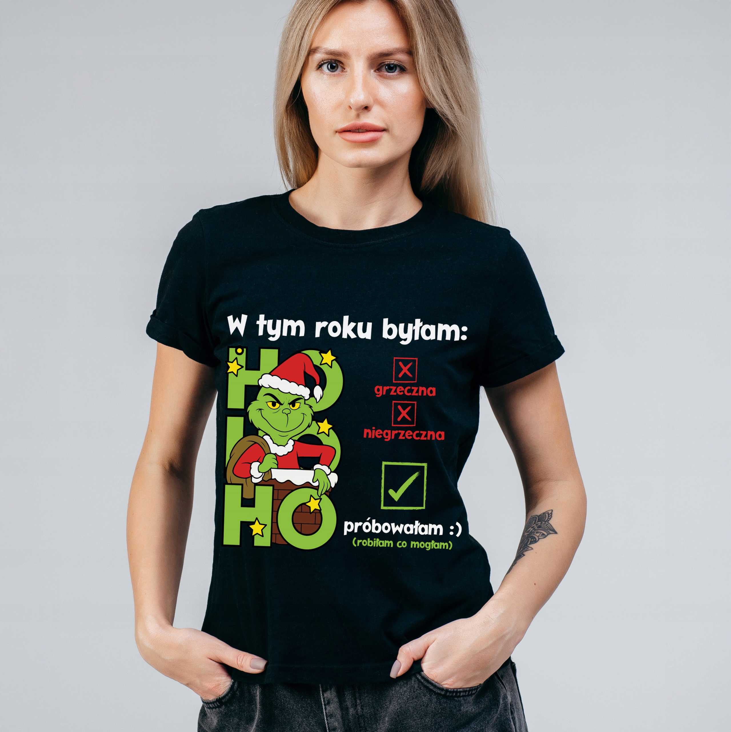 БАВОВНЯНА ФУТБОЛКА ЖІНОЧА - РІЗДВО - ПОДАРУНОК - GRINCH - 02 - S