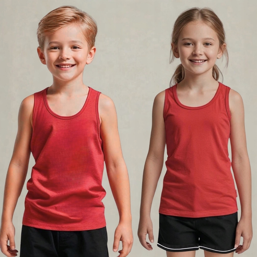 Універсальна дитяча футболка без рукавів, ідеальна як літній одяг у теплі дні або як майка взимку. Ми пропонуємо футболку в багатьох кольорах. Обирайте улюблені кольори та насолоджуйтеся комфортом у найкращому стилі!