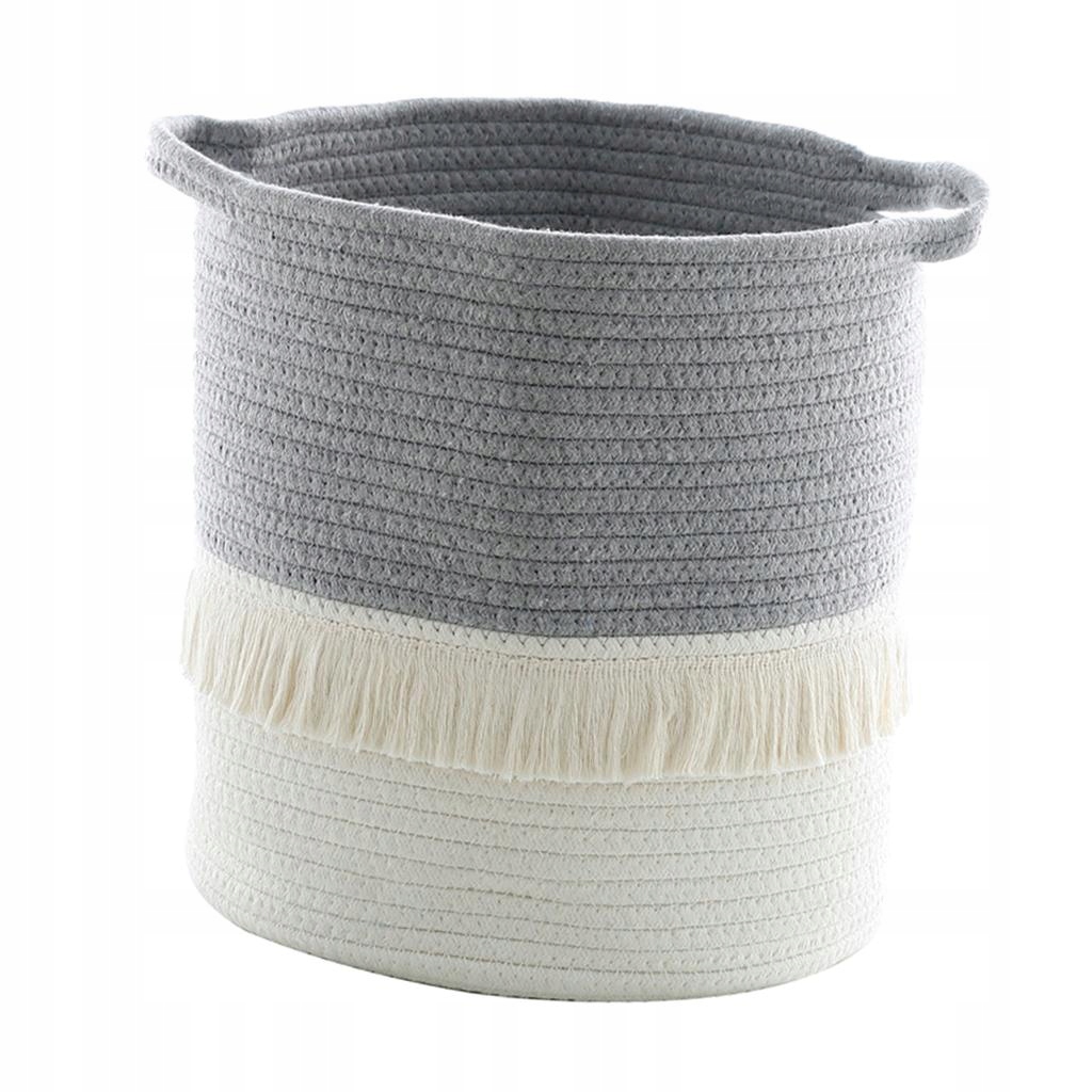 Кошик для прання 13 x 12 -дюймовий бавовняний мотузок з тканим відсіком для зберігання з сірими ручками