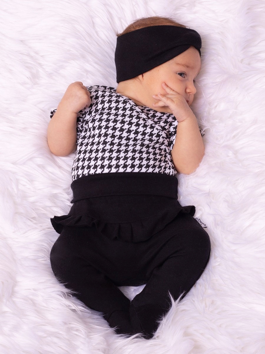 Комфортні та м'які снаки зі 100% повітряної бавовни. Висока якість продукції підтверджена сертифікатом Oeko-Tex Standard 100 Trustworthy Textiles. Комбінезон має вільний крій і злегка занижену талію для розміщення підгузника, а також широку шнурок на талії, що не тисне, що забезпечує повний комфорт для дитини. Цей фасон прикрашений рюшем спереду.