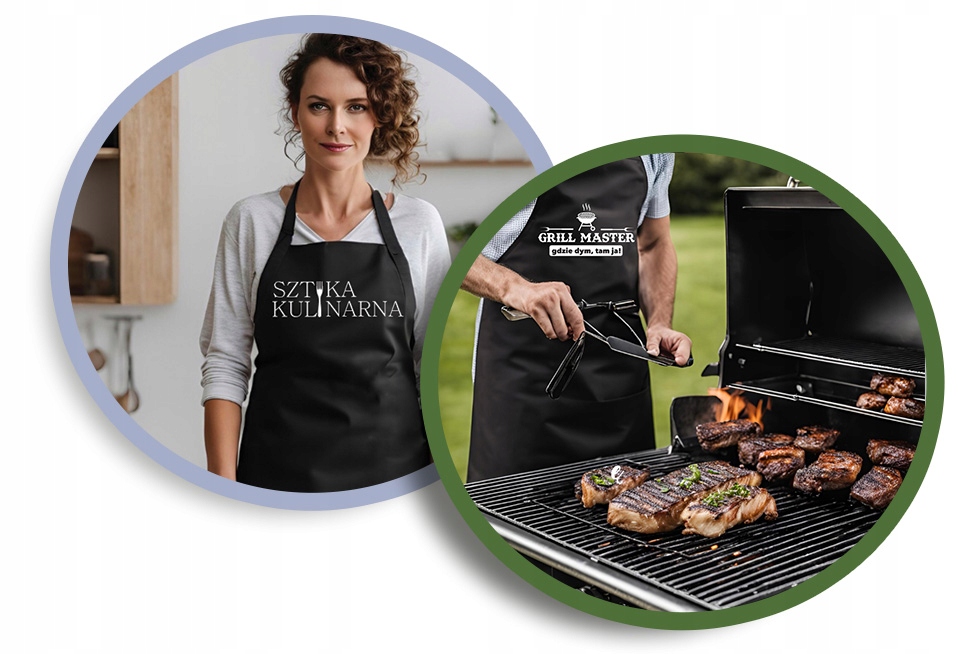 ☝️ Ось так виглядають зразки фартухів із нашою оригінальною графікою.
