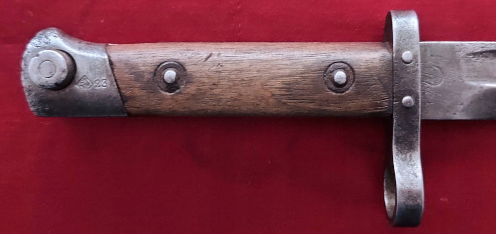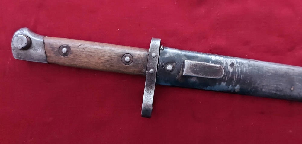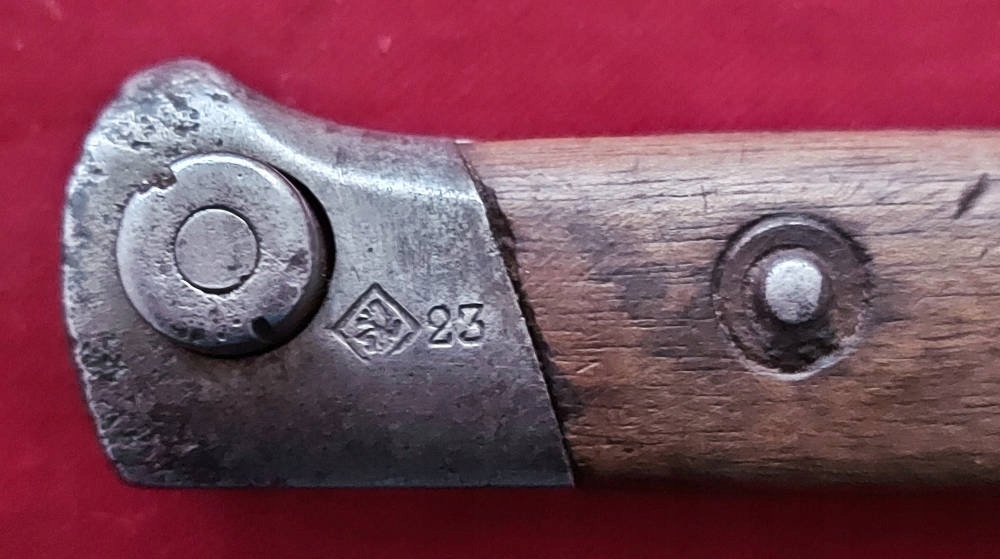 Тема продажу - Чехословак Байонет WZ. 1895 - Солдатська версія. Вони були виготовлені як з нуля, так і з інших напівфінансованих продуктів після падіння імперії. Лезо без обсягу, ви все ще можете побачити слід фабричного фрезерування. Акуратно загострено в епоху. На порозі леза круглий підпис із заплетеними літерами ZP (Armiovka Praga). Обшивка ручки дерев’яна, оригінальна. Замок Bayonet функціональний. На голові підпис, Чехий лев у Ромбі та 23 (військовий прийом Празької зброї). На вході підпис може в овалі. Знак моравських металургійних рослин в Оломуці (Моравке Окерера - Моравські металургійні рослини). Вагіна функціонує, лезо добре у піхві. аукціон !!!