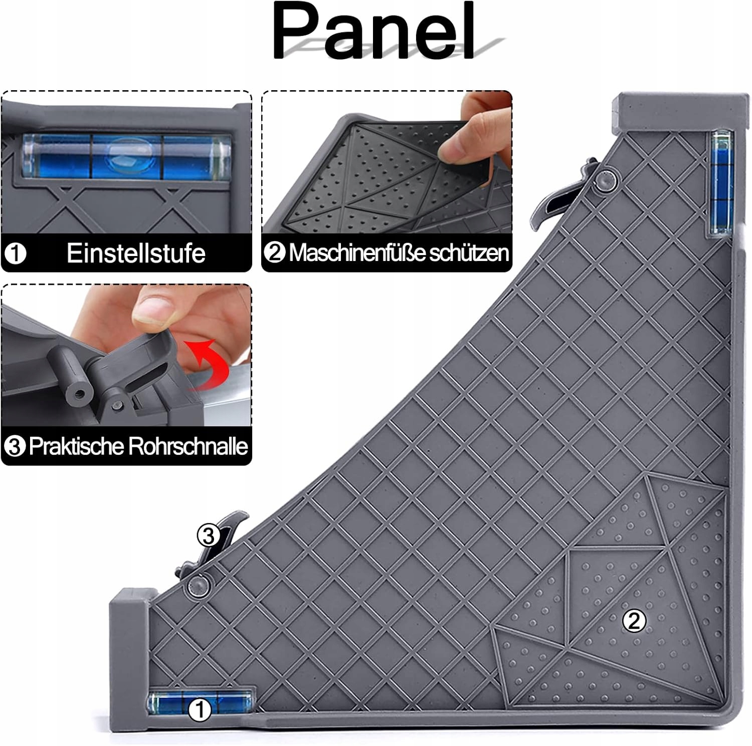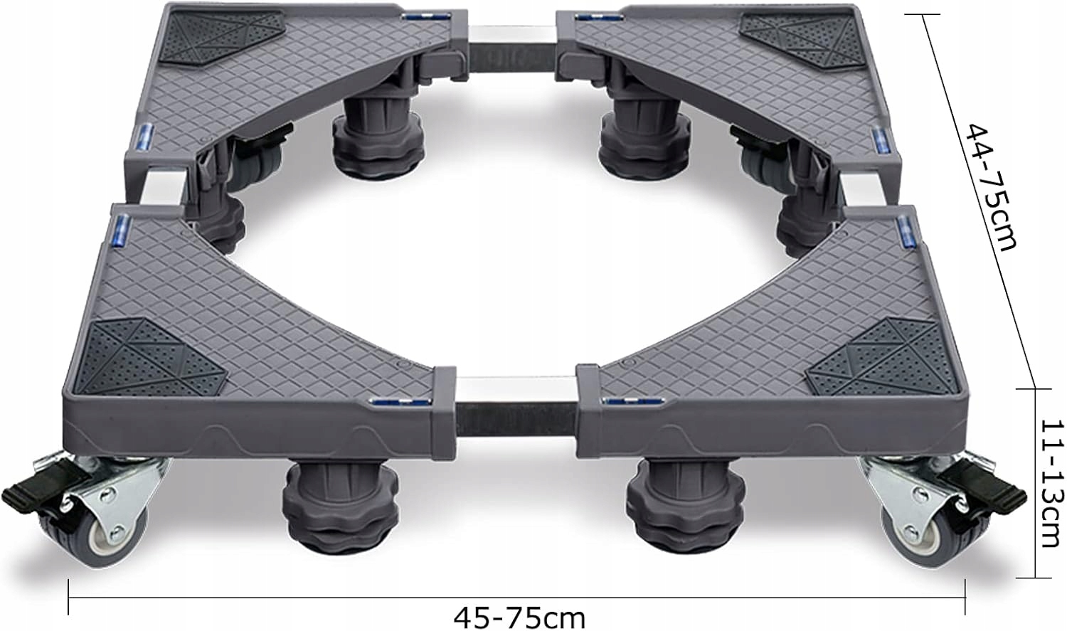 8 ніг з можливістю індивідуального коригування висоти (10-13 см). Основа може бути гнучко регульована для забезпечення хорошої стабільності. Підходить для всіх побутових приладів різної висоти.