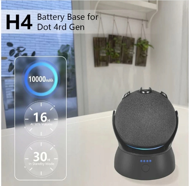 Підвищте мобільність свого Echo Dot 4th Gen завдяки сучасній бездротовій базі з великою ємністю акумулятора!