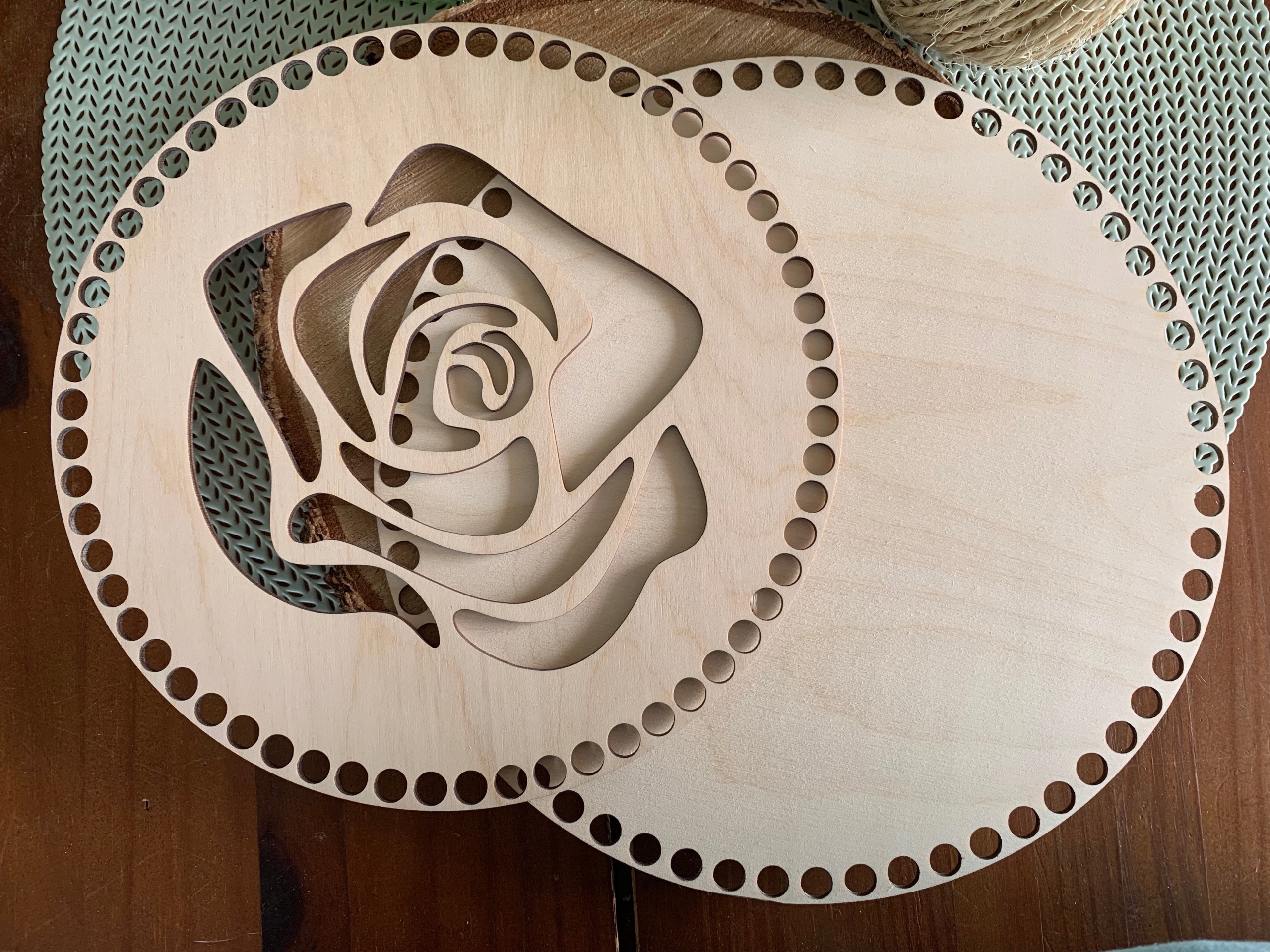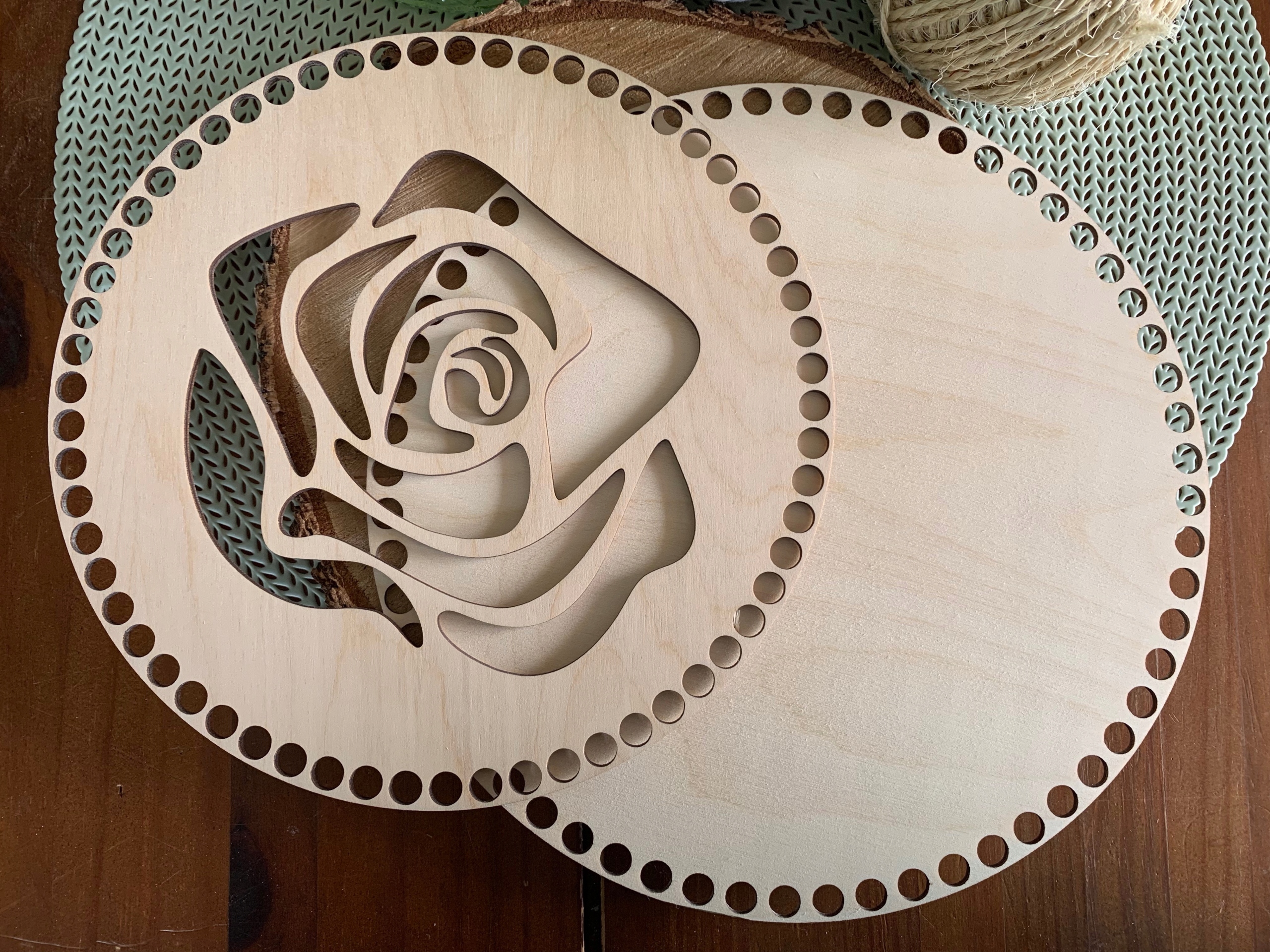 Предмет продажу - набір з двох основ для дна та кришки кошика макраме або гачком у формі кола з візерунком троянди. h1>
