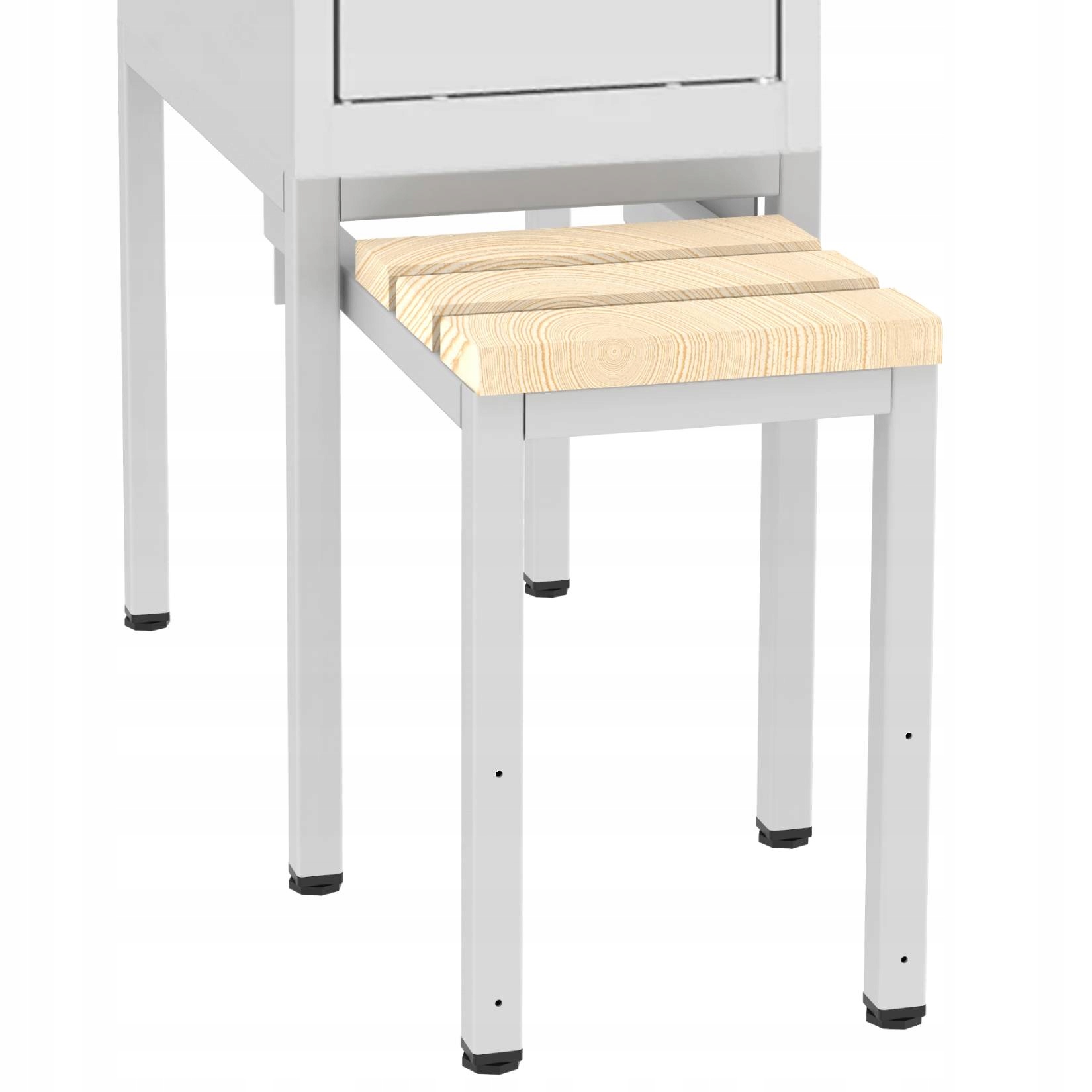 висувна база PW 311 W 30 см. Суцільна конструкція основи та висувної частини зварена і виготовлена із закритих профілів, гарантуючи довговічність та стабільність. Завдяки регульованим ногам, користувачі можуть відрегулювати висоту бази, що поширюється на шафу одягу до власних потреб, а база збільшує гардероб до 39 см. Установка з гардеробом проста і зручна, завдяки практичним гвинтам. Така основа PW311W буде ідеальною у спортивних гардеробах, навчальних закладах або на робочих місцях, де планується момент відпочинку при зміні одягу.