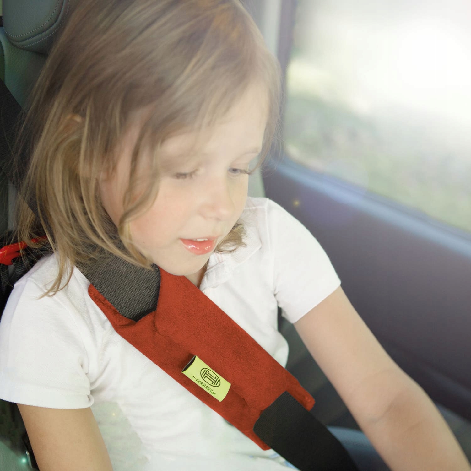 - Додатковий фіксатор ременя дозволяє індивідуально регулювати зріст дитини та гарантує, що діагональний ремінь безпеки автомобіля не «врізається» в шию дитини .