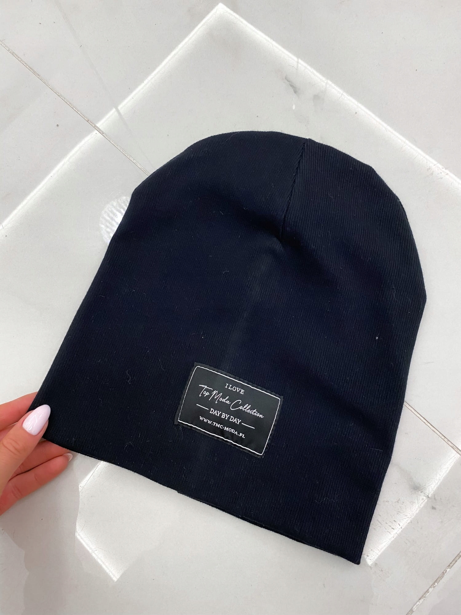 Чорна базова шапка створена в Польщі брендом Top Moda Collection, виготовлена зі зручного в носінні подвійного трикотажу з ребристою структурою з додаванням еластану. .