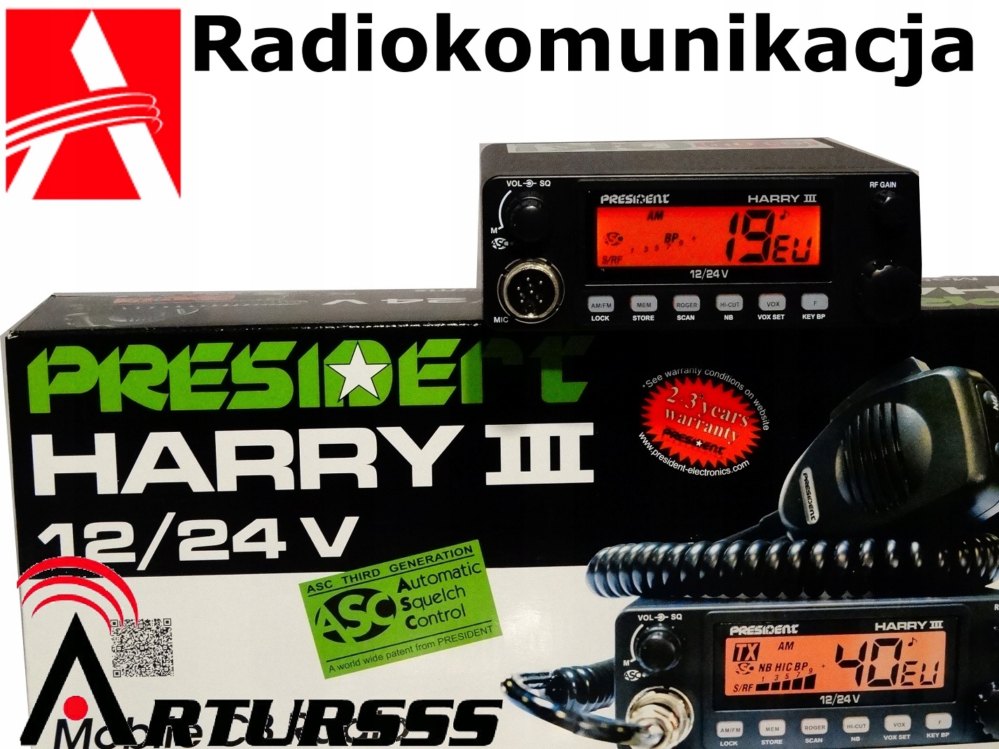- CBradio President Harry II ASC 12/ 24В з підготовленим підключенням для джерела живлення 13,8В