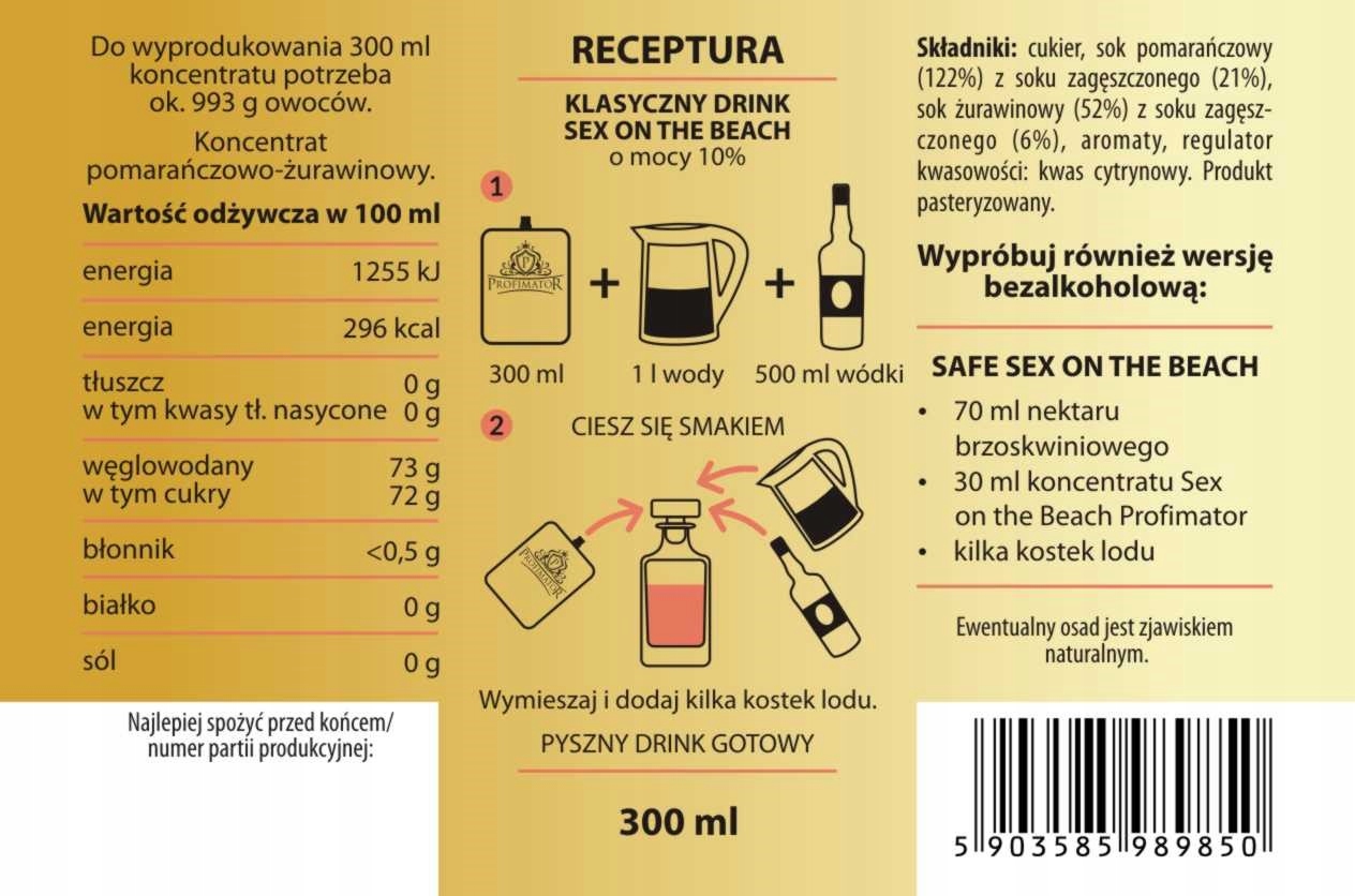 Відтворення: Просто додайте 500 мл 40% горілки та 1 літр води + кубики льоду до 1 пакетика (300 мл) концентрату PROFIMATOR.