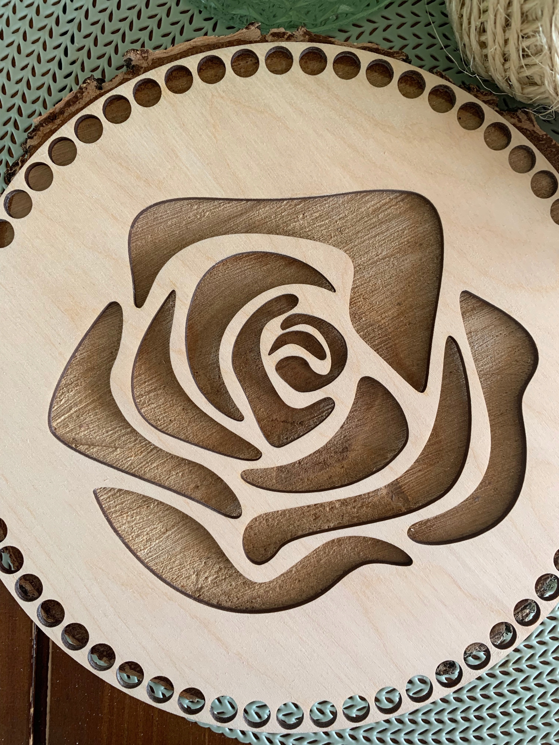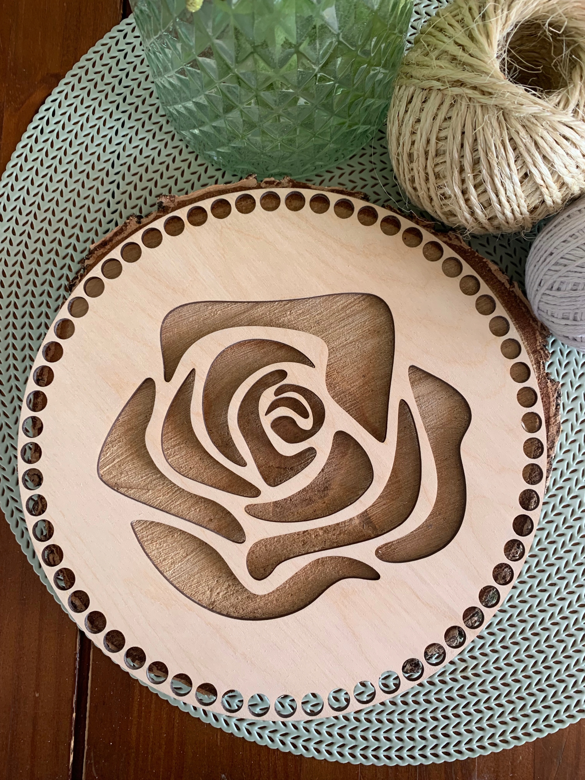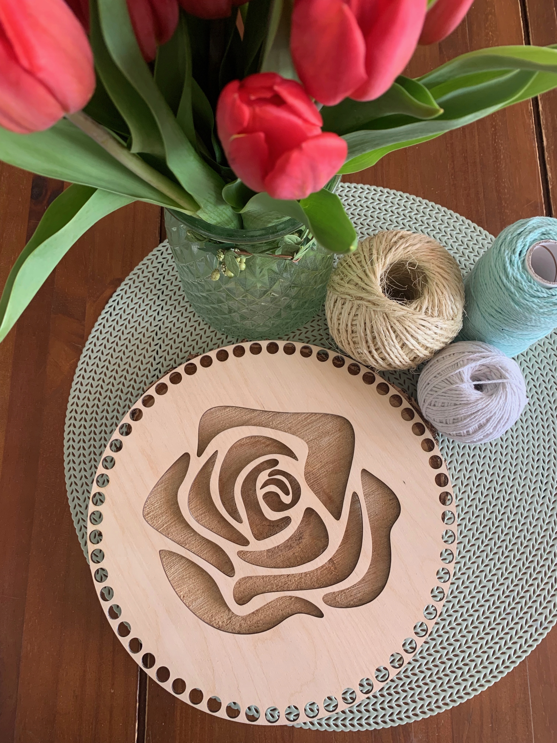 Предмет продажу - набір з двох основ для дна та кришки кошика макраме або гачком у формі кола з візерунком троянди. h1>