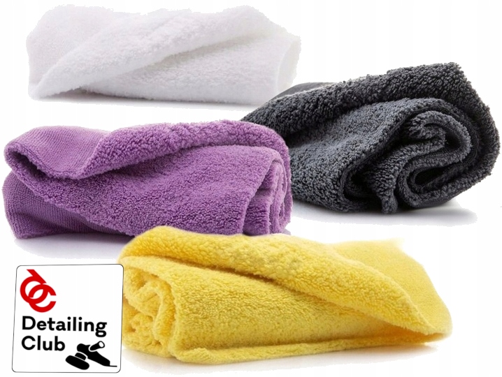 Набір містить чотири мікроволокна - фіолетове, жовте, біле та темно-сіре.