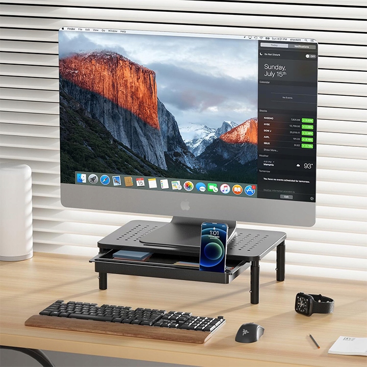 Ця стабільна підставка з ящиком є ідеальним рішенням для кожного робочого місця. піднімає екран до ергономічної висоти , покращує комфорт роботи і дозволяє зберігати порядок на столі .