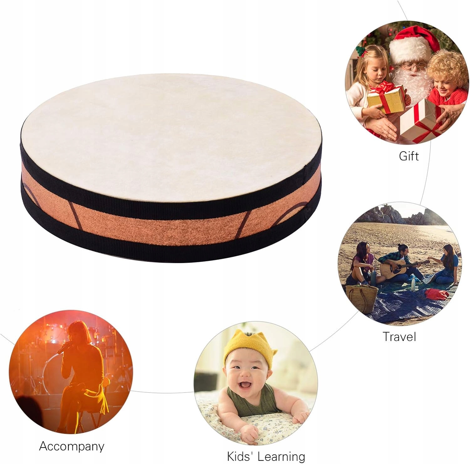 Дерев'яний корпус барабана та голова барабана з козячої шкіри добре сконструйовані для тривалого щоденного використання. Барабан може відтворювати справжній і привабливий звук, як хвилі, що розбиваються об каміння, або хвилі, що повільно плескаються на пляжі. Металеві кульки всередині, які створюють чудові звукові ефекти при нахилі або струшуванні барабана. Делікатно відшліфована поверхня та добре виготовлена кришка роблять його ідеальним вибором для вивчення музики. Лагідний шум морських хвиль допомагає розвивати музичний талант і покращувати відчуття ритму.