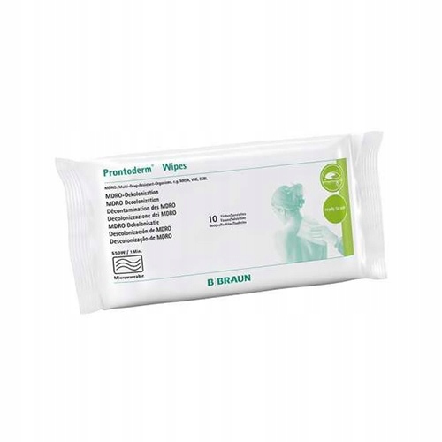 Серветки Prontoderm - готові до використання серветки для миття всього тіла. В упаковці 10 серветок, кожна з яких призначена для миття окремих частин тіла. Це чудовий розчин для миття тіла пацієнтів перед операцією та ерадикації MRSA. Продукт містить полігексанідин.