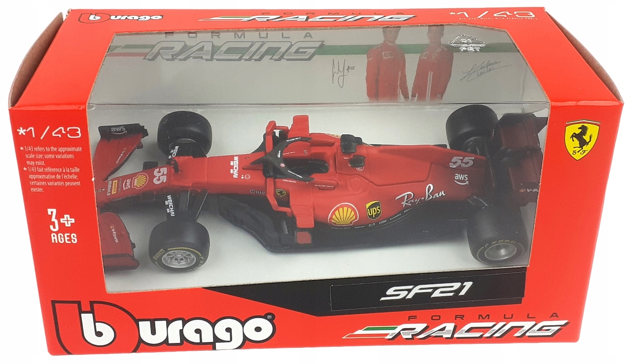BBURAGO FORMUŁA F1 BOLID FERRARI RACING SF21 CARLOS SAINZ #55 1:43