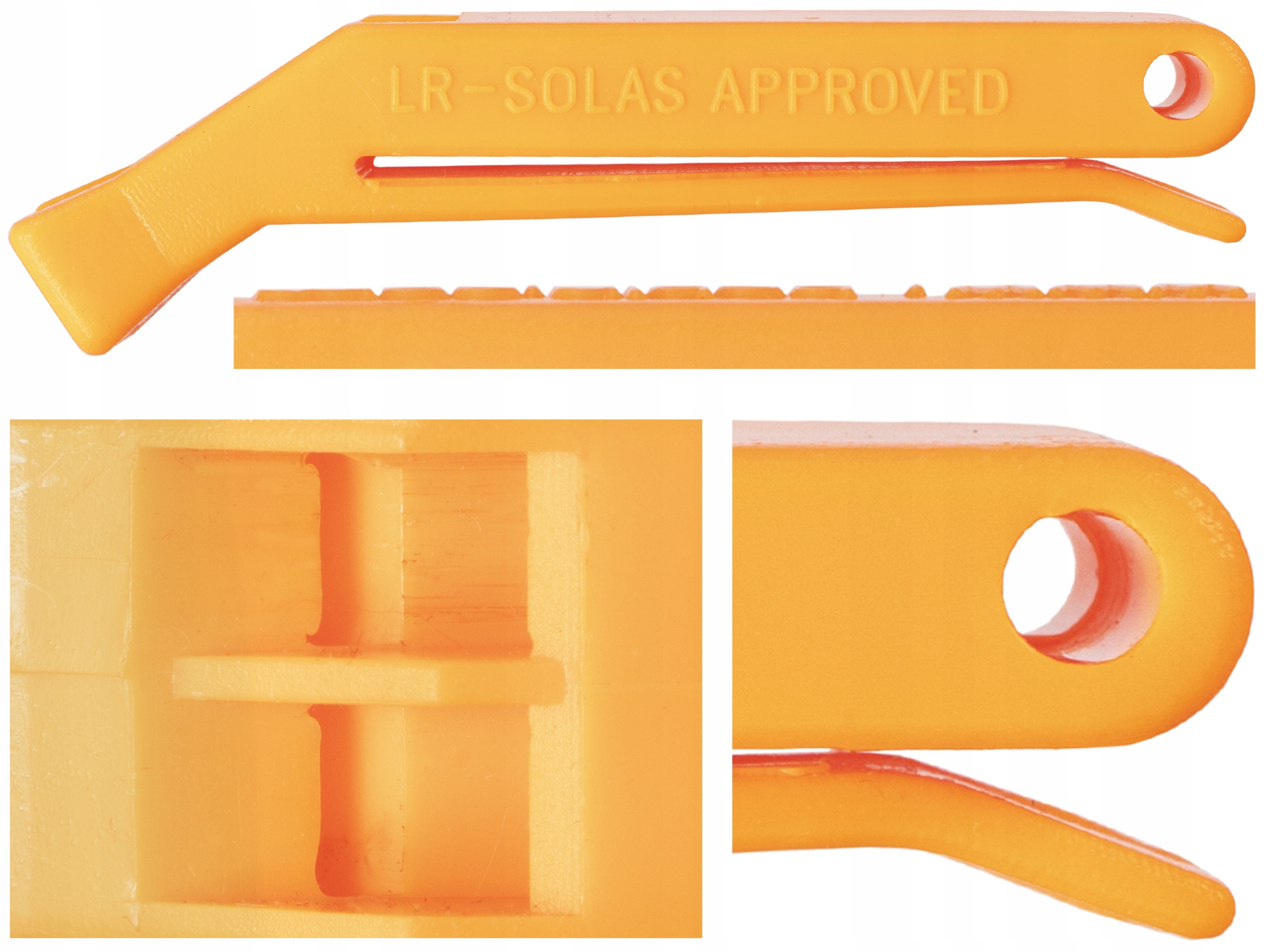 Свисток виготовлений з матеріалу з високою стійкістю до механічних пошкоджень, несприятливого впливу морської води та погодних умов. Яскраво-помаранчевий колір забезпечує відмінну видимість і дозволяє легко швидко знайти свисток.