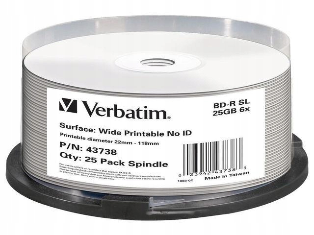 Покупая «BD-R Verbatim 25GB X6 DL для друку NO ID (Cake 25)» данный товар из каталога «Blu-ray» вы можете быть уверены, что после оформления заказа, доставки в Украину, вы получите именно то, что заказывали, в оговоренные сроки и европейского качества.