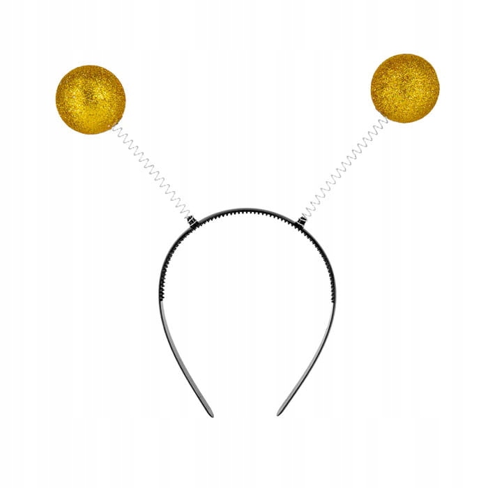 Пластикова пов'язка на голову ідеально підходить для бджілки, сонечка або метелика. На пов'язку кріпляться пружини з золотими кульками. Вусики покриті блискітками.