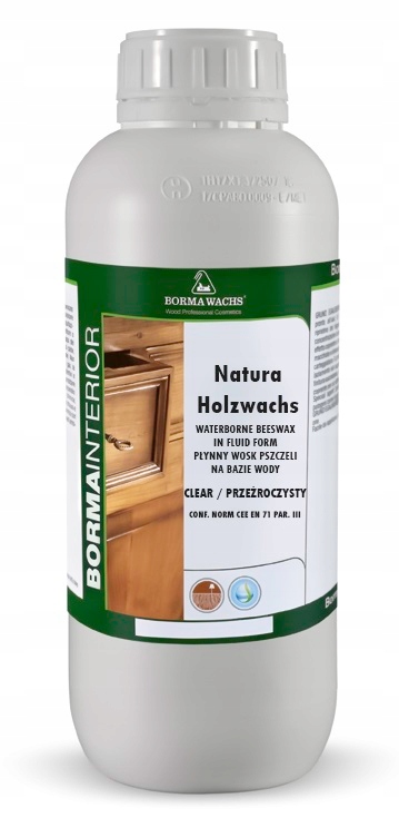 NATURA HOLZWACHS WATERBORNE BEESWAX IN FLUID FORM це рідкий бджолиний віск на водній основі. Готовий до використання та простий у застосуванні. Не містить біоцидів і силікону. Живить і захищає кожну дерев'яну поверхню, залишаючи м'яке і приємне захисне покриття з антистатичними властивостями. Natura Holzwachs пігментований світлостійкими барвниками. Це довговічний продукт, ідеальний для ремонту та догляду за всіма дерев’яними меблями.
