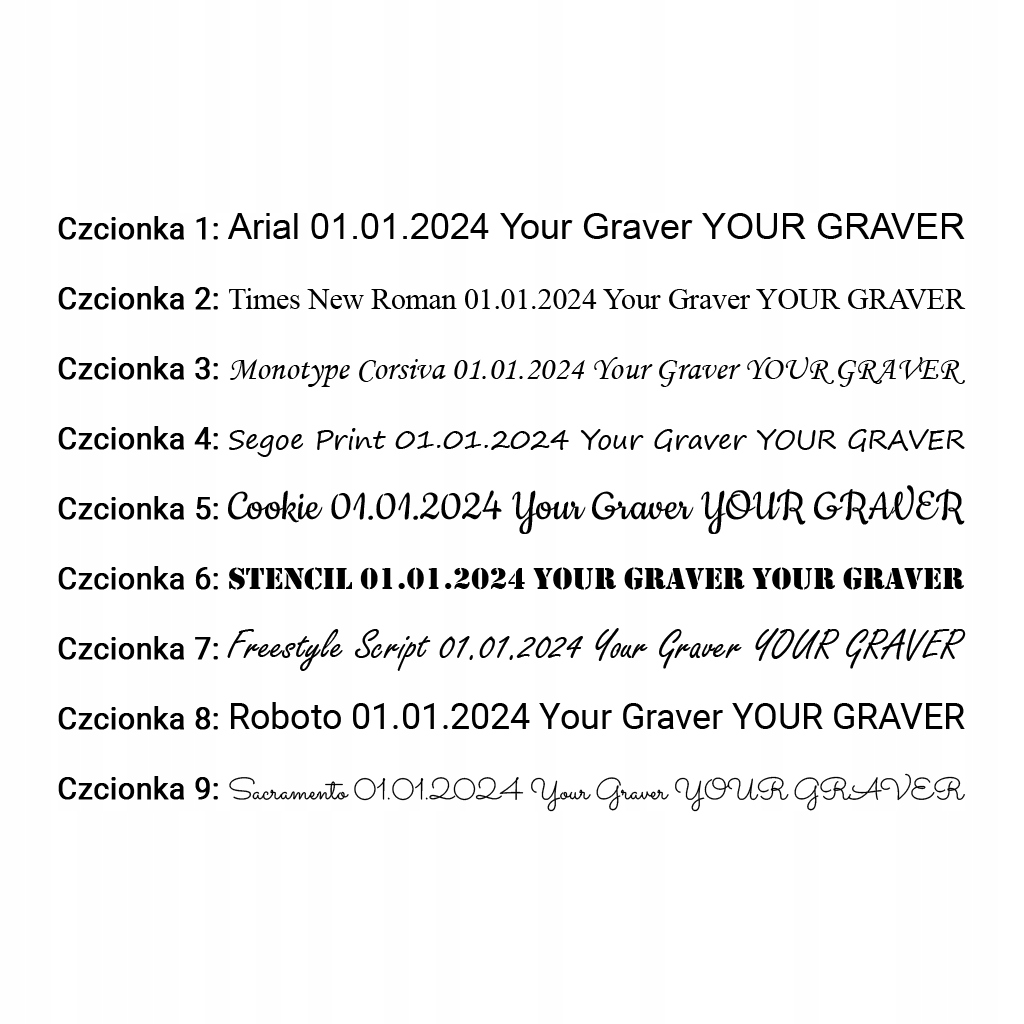 - Вміст гравірування (наприклад, ім'я, прізвище, логотип тощо)