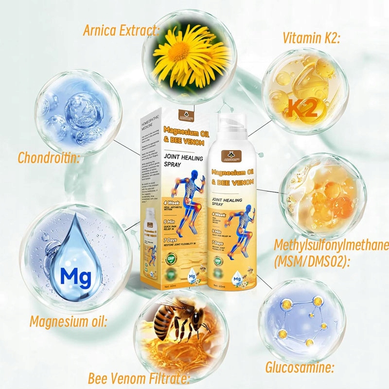 ✅ Ви розпилювача суглоба з магнієвим маслом бджолиного отрути поєднує в собі силу бджолиної отрути, меду та ефірних масел, щоб заспокоїти біль у суглобах. Formula✨