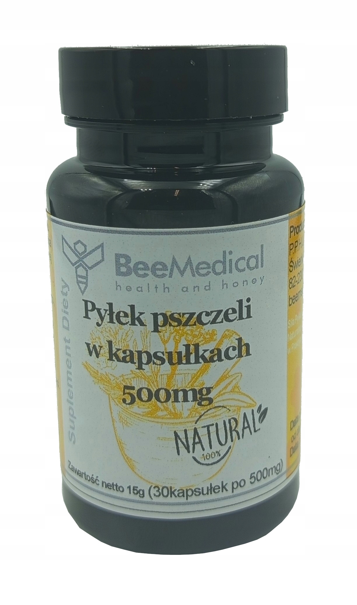 Бджолиний пилок надзвичайно багатий поживні речовини продукт, який бджоли збирають з квітів і переробляють у вулику. Пилок цінується за свої поживні властивості та властивості, що підтримують організм. Наші капсули містять чистий бджолиний пилок, який надходить безпосередньо з нашої сімейної пасіки, що забезпечує найвищу якість і свіжість продукту.