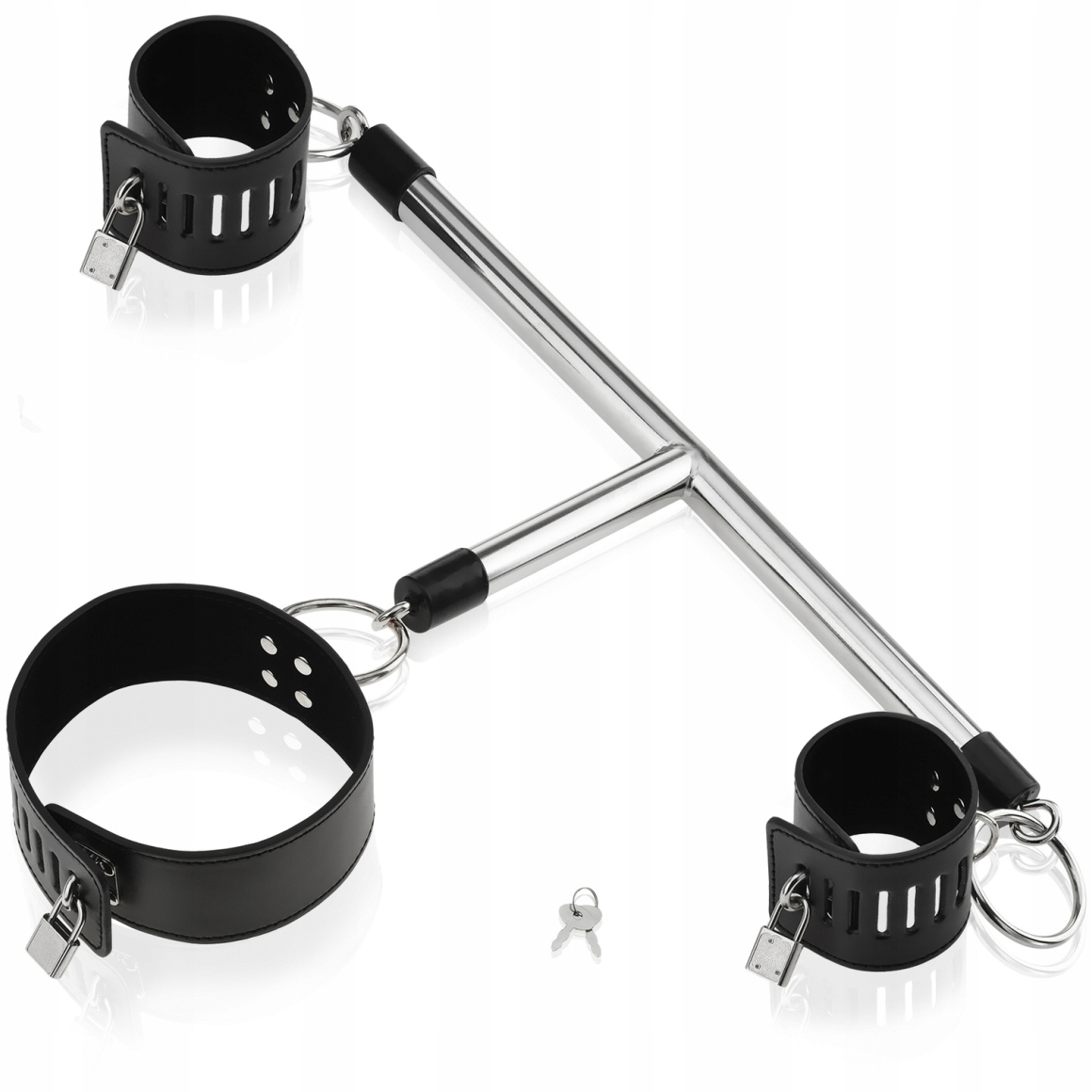 Соцільний БДСМ-набір. Металевий брусок зі шкіряними кайданами та нашийником на замку. Упряж, що забезпечує сексуальне бондаж і інтенсивне задоволення в стилі садо-мазо. Гаджет дозволить зв'язати руки за тілом, а завдяки з'єднанню з шийним коміром сабмиссив не посміє спробувати звільнитися. Ваша сексуальна жертва буде абсолютно беззахисною, відданою і слухняною. Внутрішня частина шиї та ручок покриті ніжним оксамитовим матеріалом, який захищає від хворобливих потертостей і виразок. Крім того, ви можете відрегулювати дужки та нашийник, щоб зручно регулювати окружність.