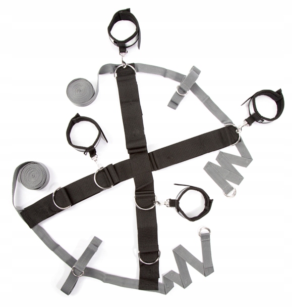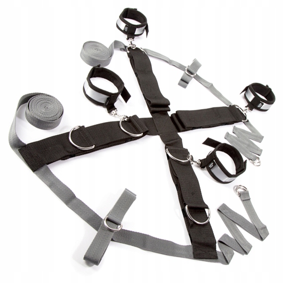 металеві кільця розміщуються на смугах, а наручники (включені в набір) або інші аксесуари повинні бути закріплені до них.