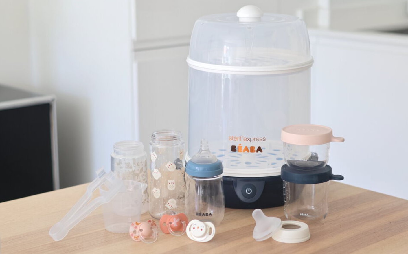 Надшвидкісний паровий стерилізатор 2 в 1 від французького бренду BEABA. Всього за 6 хвилин він ефективно знищує 99,9% бактерій (включаючи сальмонелу, ентеробактерії та лістерії). Його інтер'єр розділений на великий і малий простори, які можна використовувати одночасно або окремо, в залежності від поточної потреби. На всю поверхню (метод максі) вміщує до 9 вузьких і до 6 широких пляшок з аксесуарами. Контейнер меншого розміру (міні метод) буде ідеальним для стерилізації лише невеликих аксесуарів, напр. пустушки. Після завершення циклу пристрій вимикається.