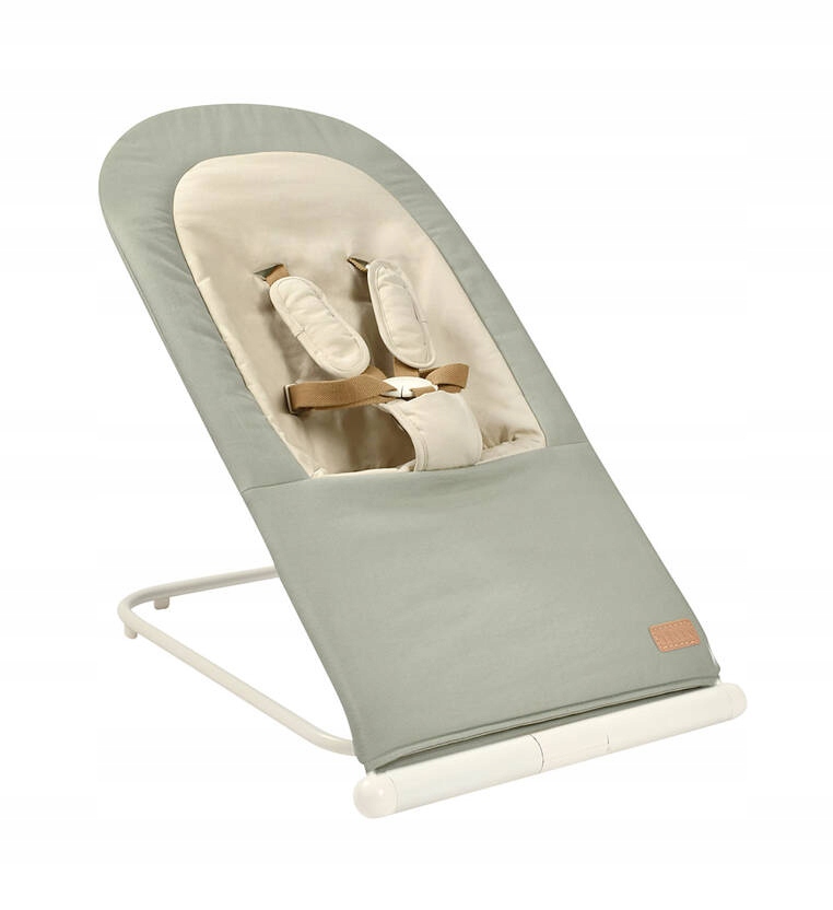 Мінімалістичний, універсальний дизайн робить меблі вміщується в будь -яку кімнату. Рама біла, а тканини мають природний колір: шавлічний зелений + легкий бежевий (сидіння та захисники для пояса) та карамель (ремені).