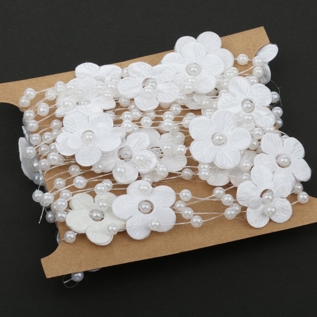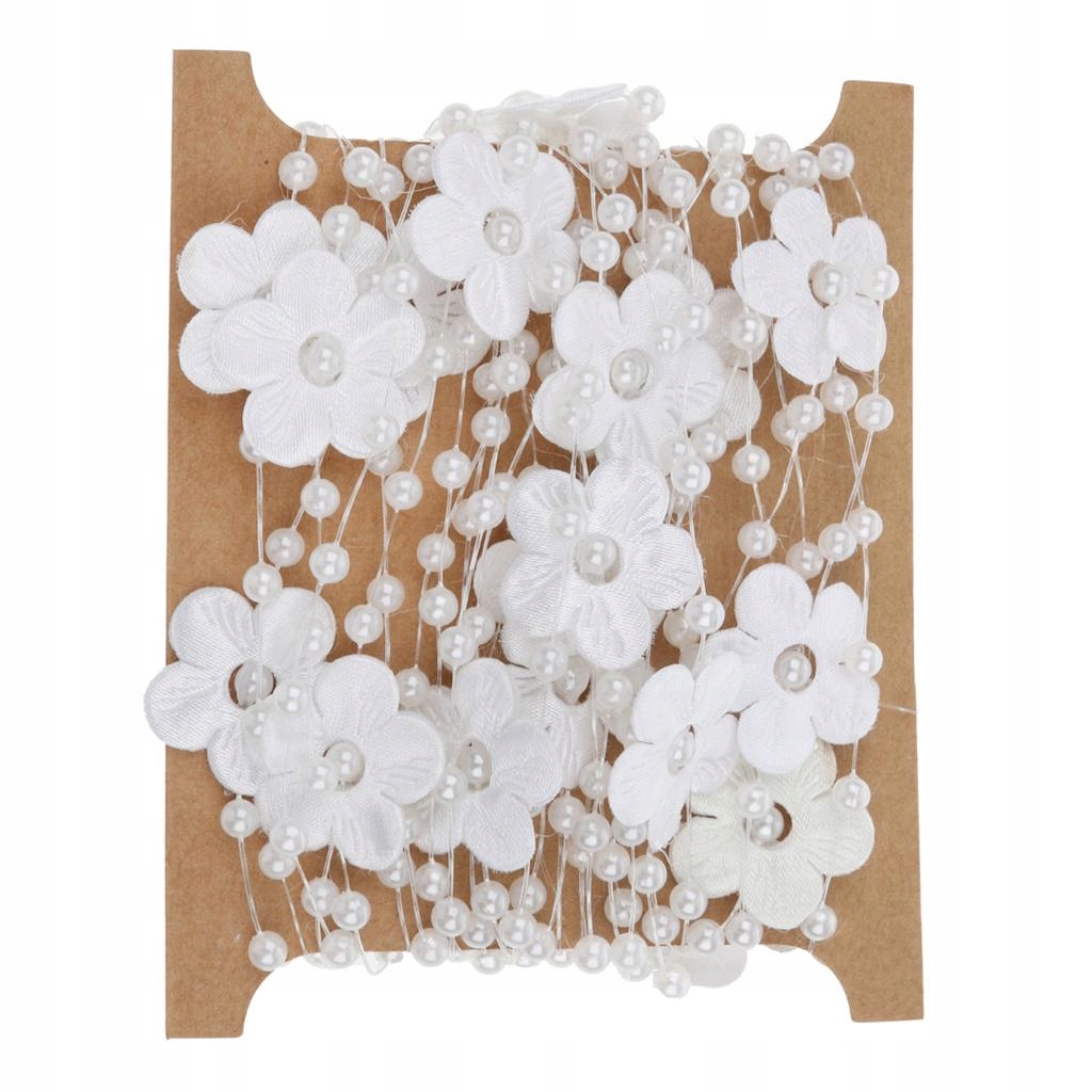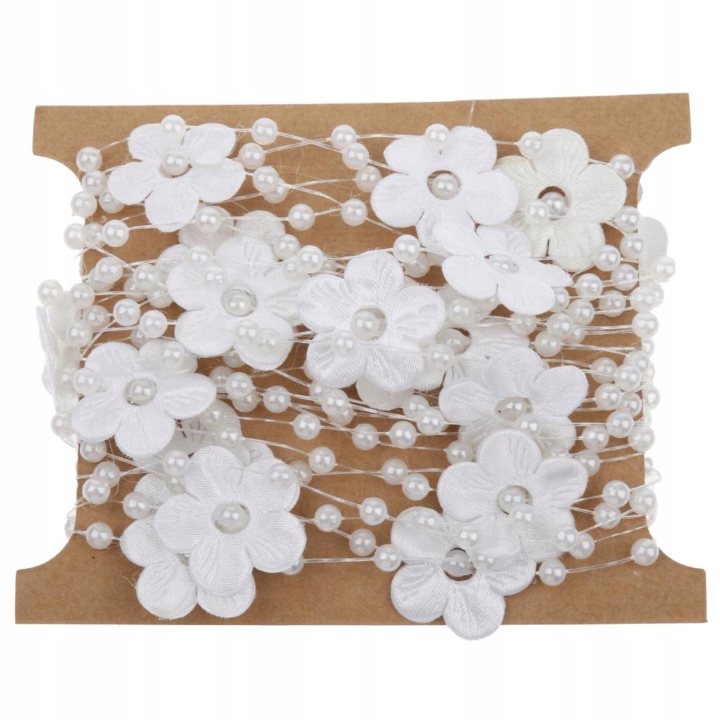 Волосінь 5M з атласною квіткою та ланцюгом із перламутровими намистинами. Декорація своїми руками, біла
