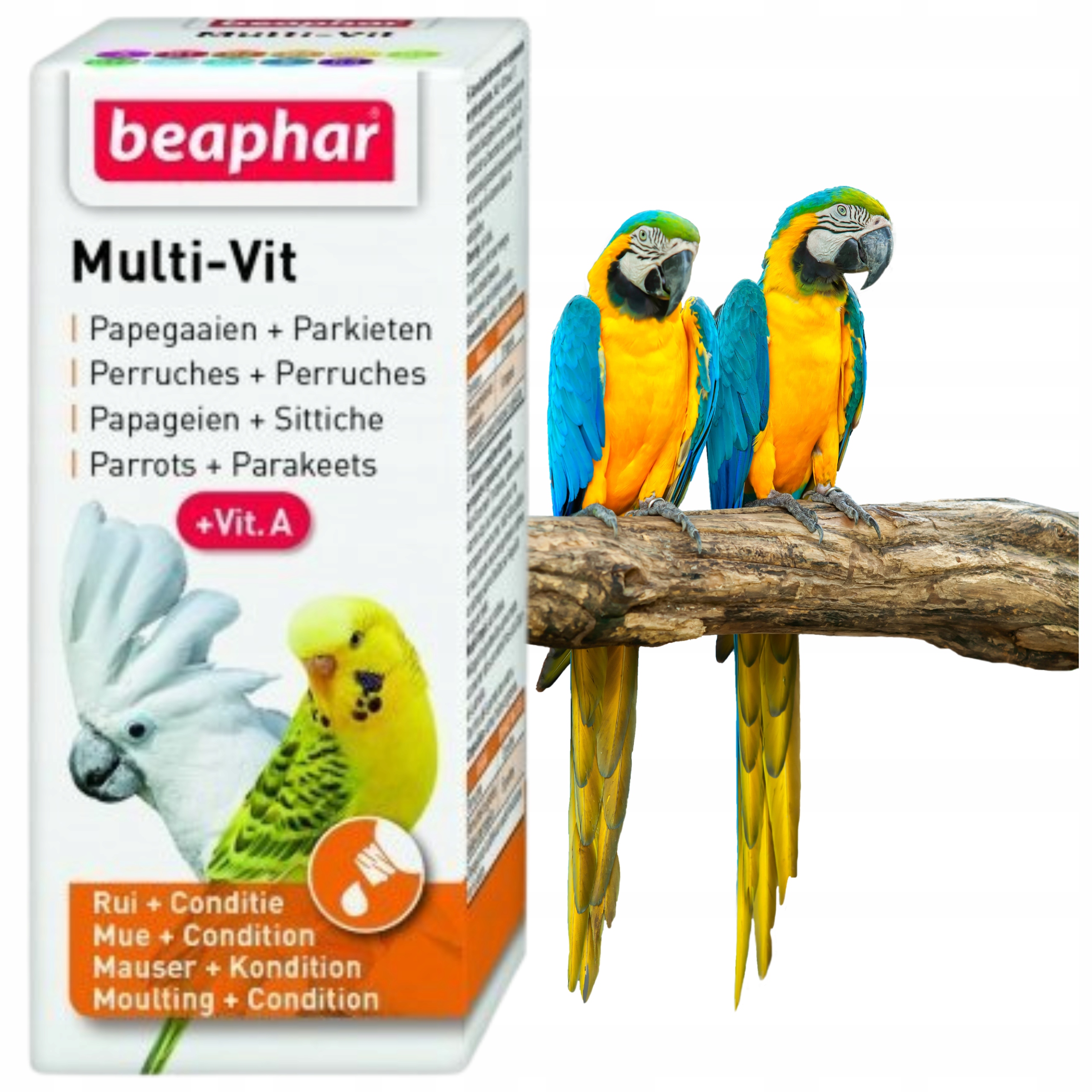 Beaphar Multi-Vit Witaminy dla papug 20ml zapobiega wyskubywaniu piór