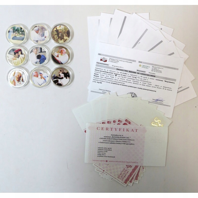 Набір монет, випущений Монетним двором Польщі у 2011-2012 роках з нагоди беатифікації Івана Павла ІІ.