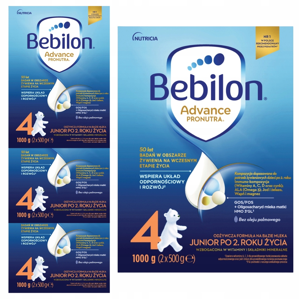 Бебілон 4 Попередня сумішшя на основі молока на основі молока через 2 роки 1000 г (2 х 500 г) x 4