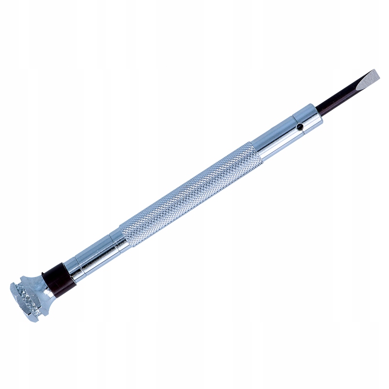 Представляємо професійну годинникарську викрутку з плоским профілем, ідеальну для точної роботи з годинниками. Оснащена змінним наконечником, прикріпленим до гвинта, ця викрутка є незамінним інструментом для ентузіастів годинникарства та людей, які займаються ремонтом годинників.