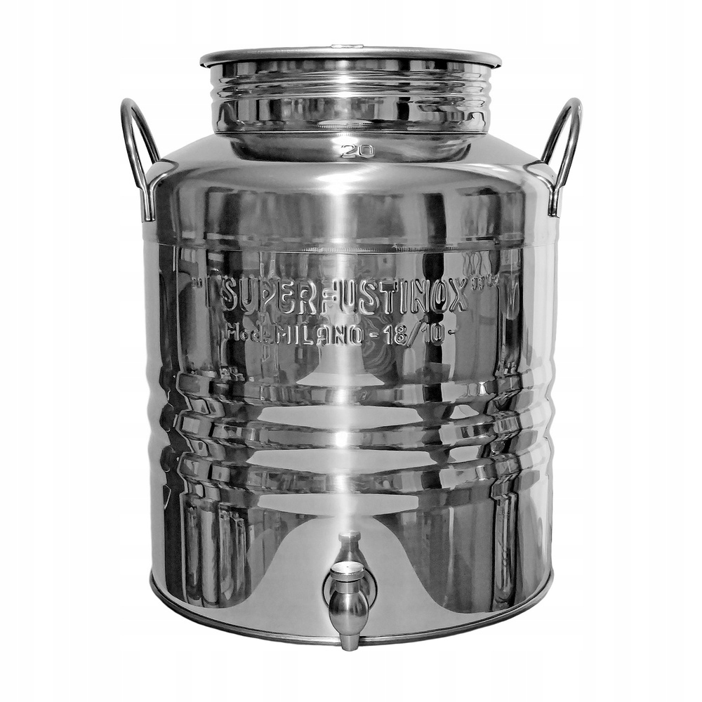 Високоякісна бочка виготовлена з міцної нержавіючої сталі та вміщує 20 літрів рідин або сипучих харчових продуктів.