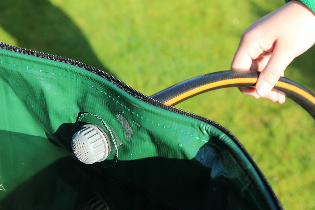 Контейнер для дощової води слід розміщувати на рівній поверхні, і його не можна рухати, коли він наповнений водою.