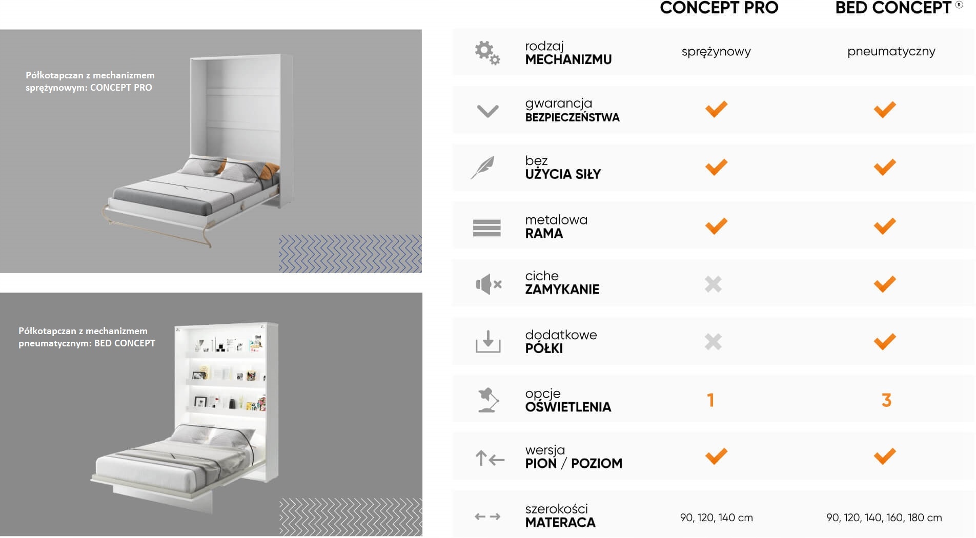Нижче зображено основні відмінності між серіями BED CONCEPT і CONCEPT PRO.