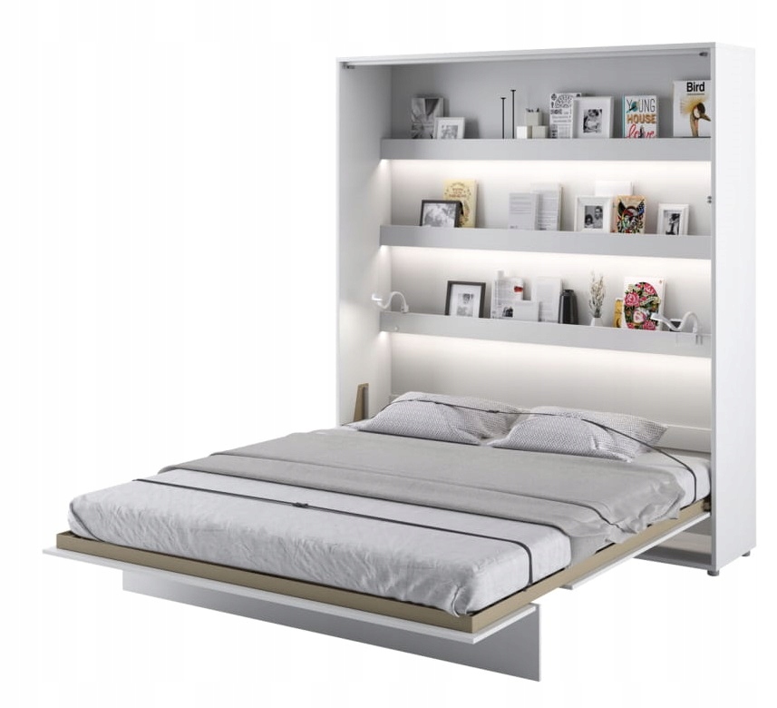 Вертикальний диван-ліжко з матрацом шириною 180 см відмінно підійде як велике двомісне ліжко. Напівліжко оснащене внутрішніми полицями, які ідеально підходять для зберігання книг і прикрас або для зберігання повсякденних речей.