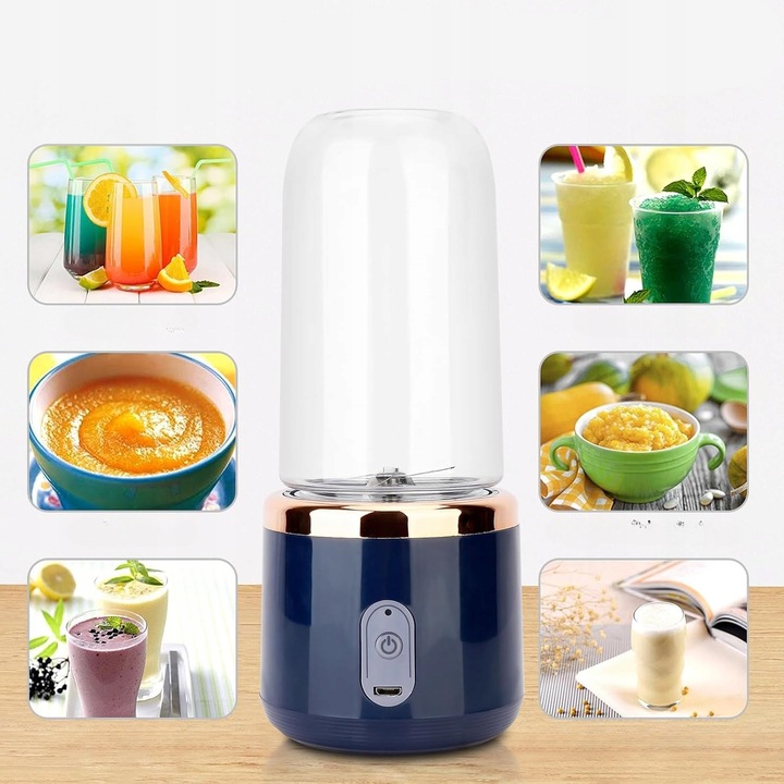 Блендер має легкий, компактний дизайн і об’єм 250 мл, завдяки чому він ідеально поміститься в сумочці, рюкзаку або спортивній сумці. Ідеально підходить для приготування свіжих коктейлів, шейків або соків у будь-якій ситуації, навіть на вулиці.