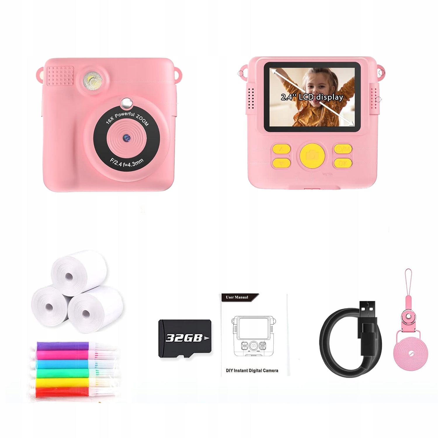 Цифрова камера з папером для друку та картою TF 32G для дітей від 3 до 12 років – рожева
