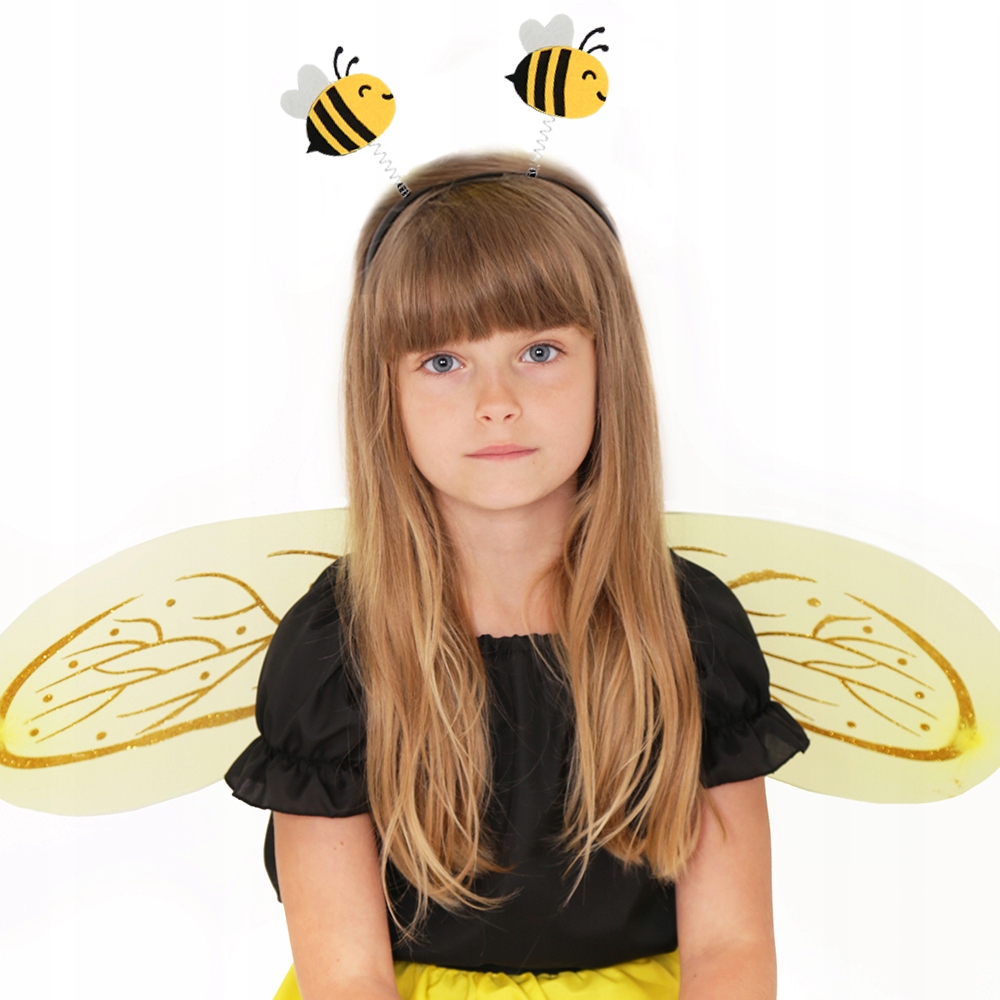 Пластикова смуга оснащена двома гнучкими пружинами, на кінцях яких два посміхнених бджіл прикріпили з двох шарів м'якого фетру: нижній чорний і зовнішній жовтий. Гурт має універсальний розмір, завдяки якому він буде відповідати як дітям, так і дорослим!
